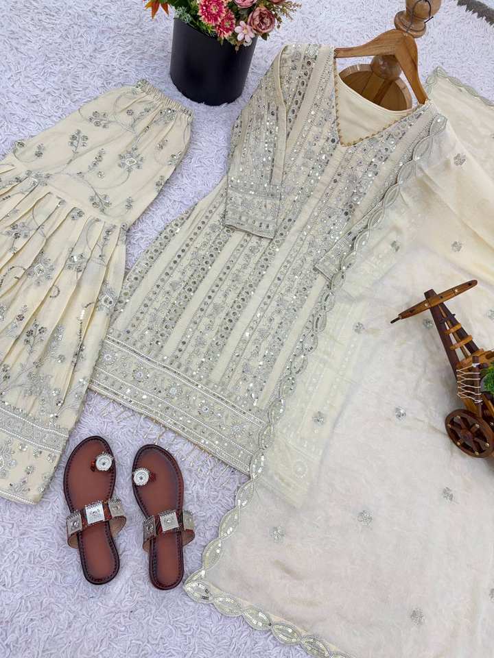 ชุดแต่งงานอินเดียและปากีสถานชุดผ้าจอร์เจียเทียมขนาดใหญ่ดีไซน์เนอร์ชุดแต่งงานแบบชาวอินเดียและปากีสถานชุดสูท sharara Palazzo dupatta สำหรับผู้ใหญ่