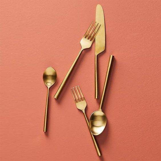 ชุดช้อนส้อมมีดเคลือบทองดีไซน์ทันสมัยหรูหรา พร้อมช้อน ส้อม และมีด คุณภาพพรีเมียม สำหรับตกแต่งโต๊ะอาหาร