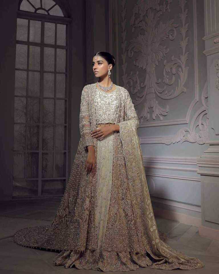 เสื้อแจ็กเก็ตต้อนรับปากีสถานดีไซน์เนอร์ทันสมัยลายดอกไม้ปักยาว lehenga choli ขนาดพลัสไซส์ออกแบบได้ตามต้องการ