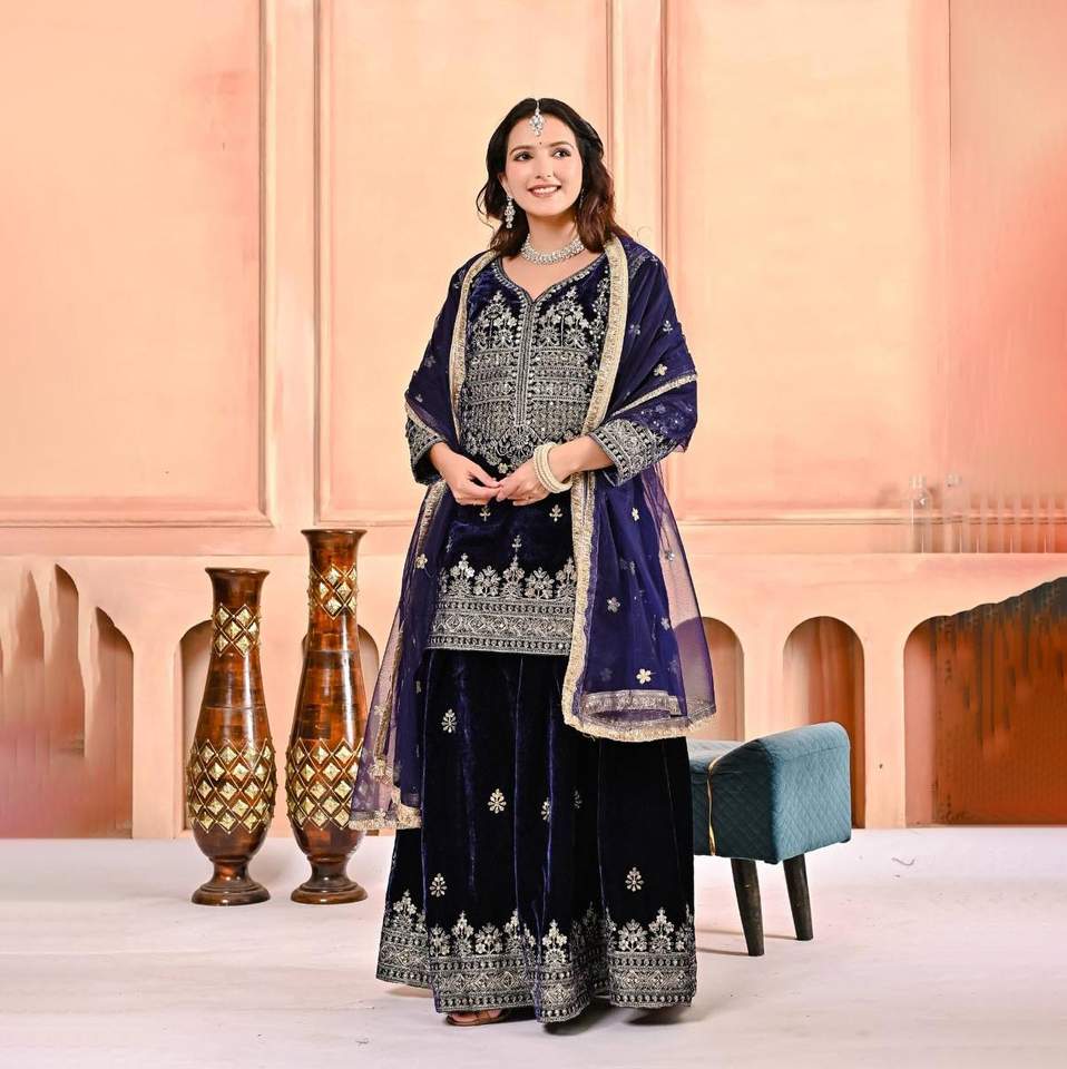 ชุดสัลวาร์ คามีซ ดีไซน์เนอร์ คุณภาพสูง แขนยาว ผ้ากำมะหยี่วิสโคสเนื้อหนา ทรงเข้ารูป ปักลาย พร้อมผ้าคลุมไหล่ สำหรับงานปาร์ตี้ ฤดูหนาว