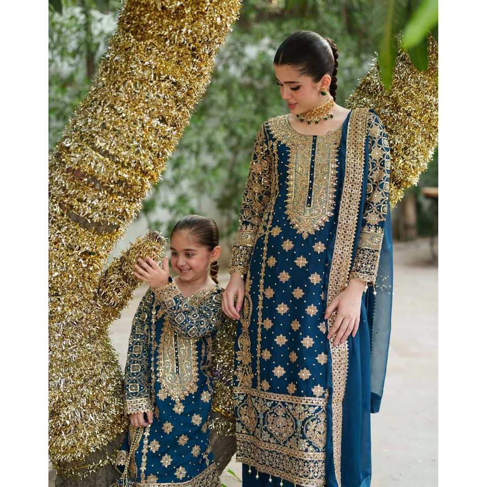Designer Mother Daughter Combination Outfits for Parties Family Matching Fashion