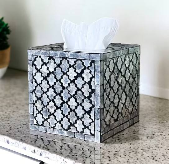 กล่องใส่กระดาษทิชชูฝังมุก งานฝีมือประดับเปลือกหอย ศิลปะตกแต่งสุดหรู ของขวัญสุดพิเศษสำหรับโอกาสสำคัญ
