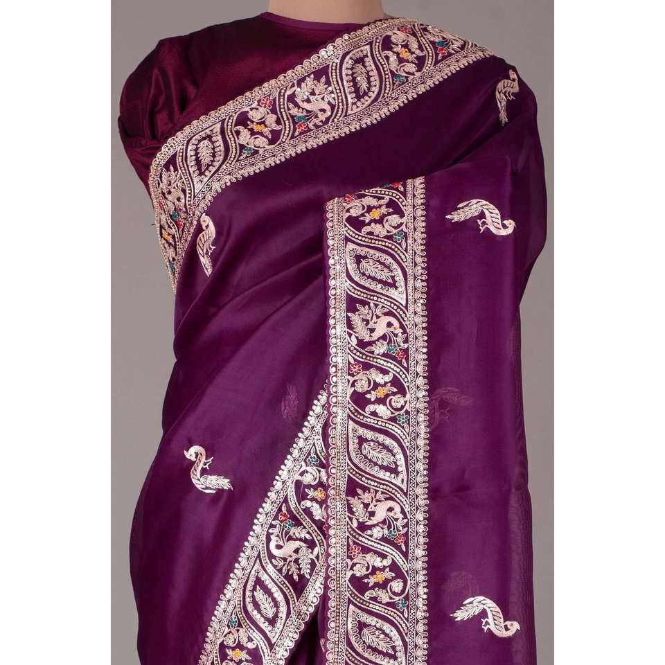 ผ้าส่าหรีปักเลื่อมลายดอกยางหลายดีไซน์เนอร์สำหรับแฟชั่นอินเดียและปากีสถาน