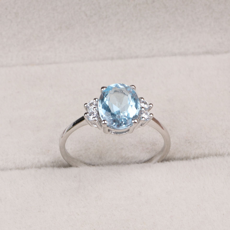 แหวนพลอยโทแพซและลูกบาศก์เซอร์คอนสีฟ้าจากนักออกแบบ925เงินแท้ทำด้วยมือสำหรับผู้หญิงขายส่ง