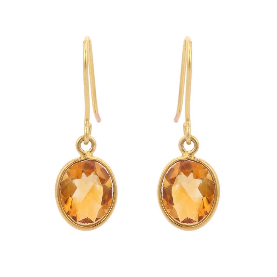 ต่างหูทรงหยดน้ำประดับพลอยซิทรินทรงรีเจียระไนแบบคลาสสิกธรรมชาติ เงินแท้ 925 ชุบทอง 18K ทำด้วยมือ รับรองคุณภาพ เหมาะสำหรับงานแต่งงาน