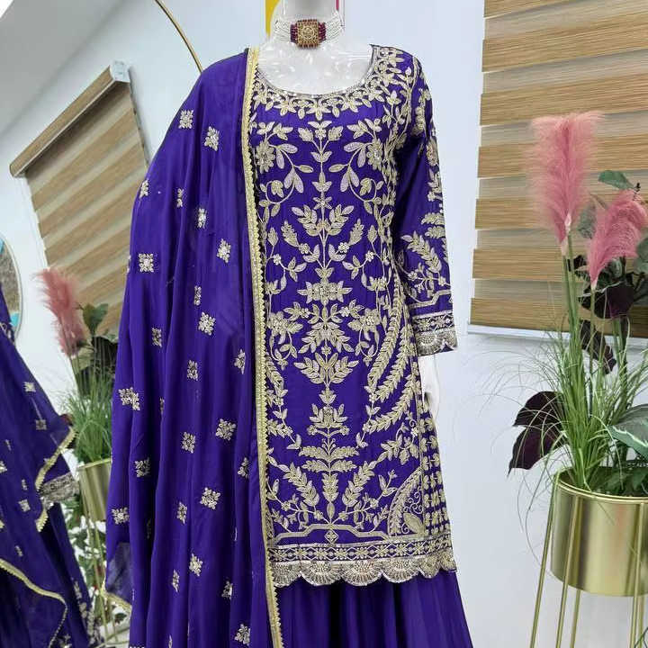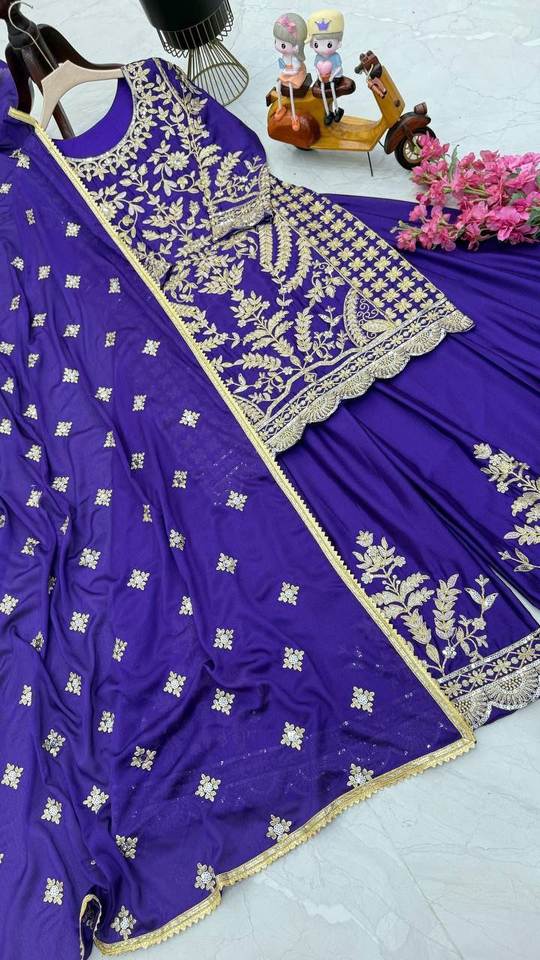 Designer New Party Sharara Suit & Dupatta Set Wrinkle-Free Reversible Knee-Length Indian Pakistani Women Regular Fit TENNECY