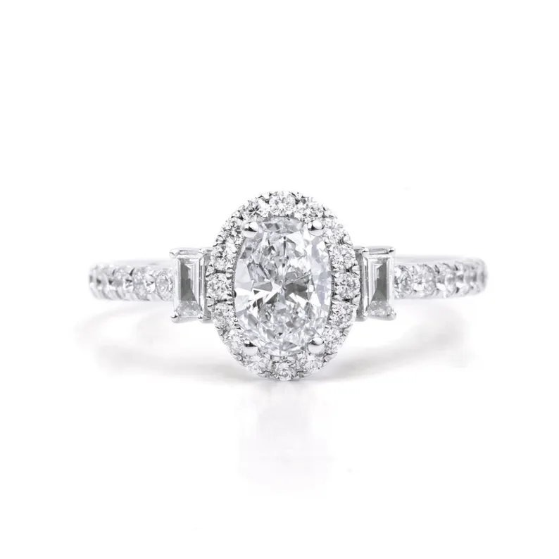 แหวนหมั้นเพชรทรงรีดีไซน์เนอร์ 0.75 กะรัต รับรองโดย IGI เพชรเม็ดกลาง 18K ทองคำ แหวนเพชรเพาะเลี้ยงสำหรับเธอ