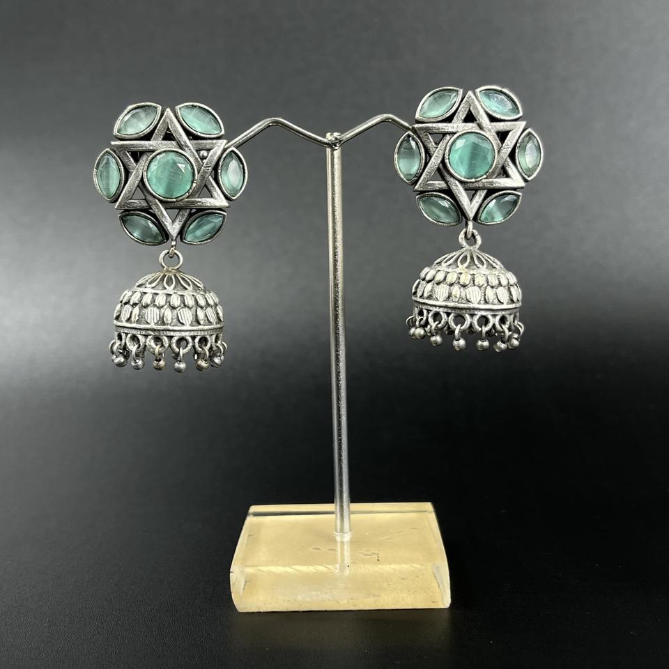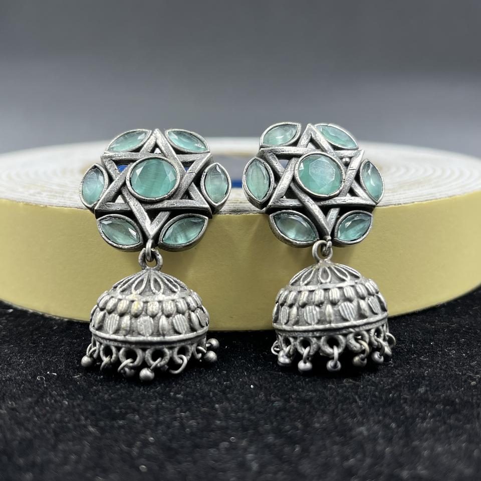 Oxidized Silver Jhumka Earrings