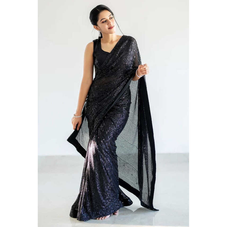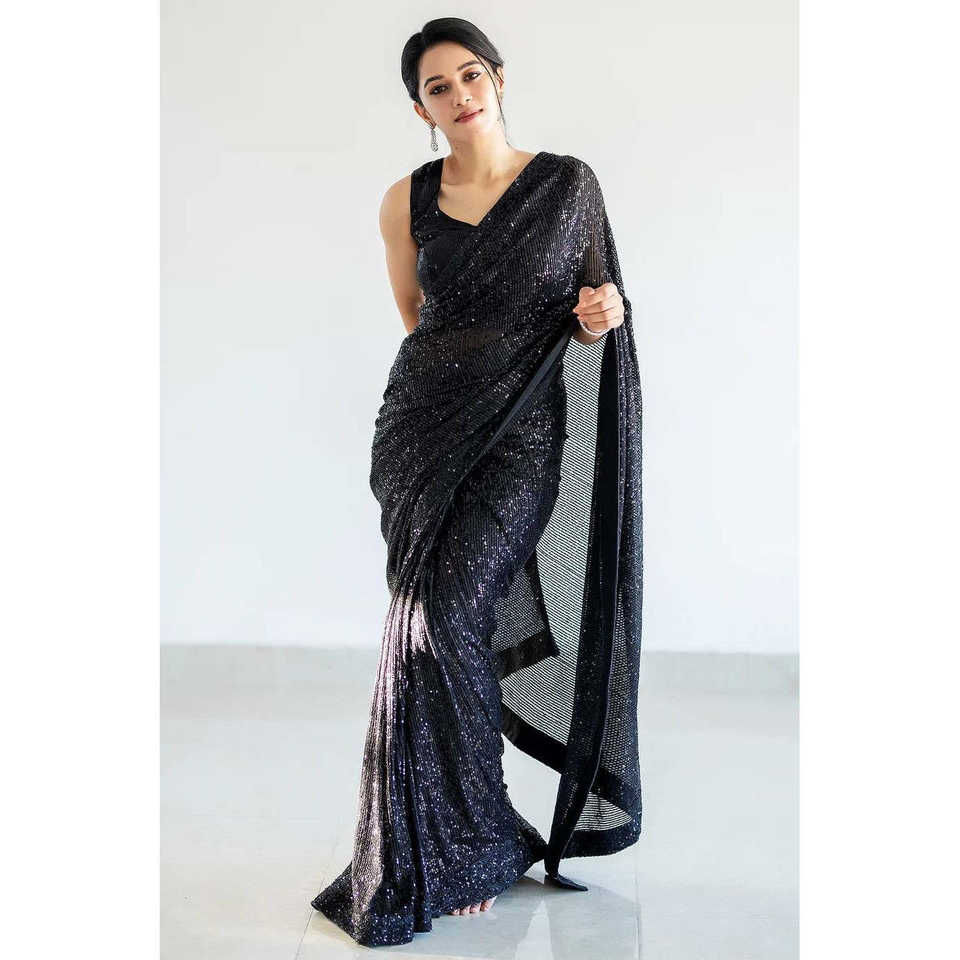 ส่าหรีออกแบบปาร์ตี้กับงานลำดับและท่อขอบสำหรับชุดพรหม