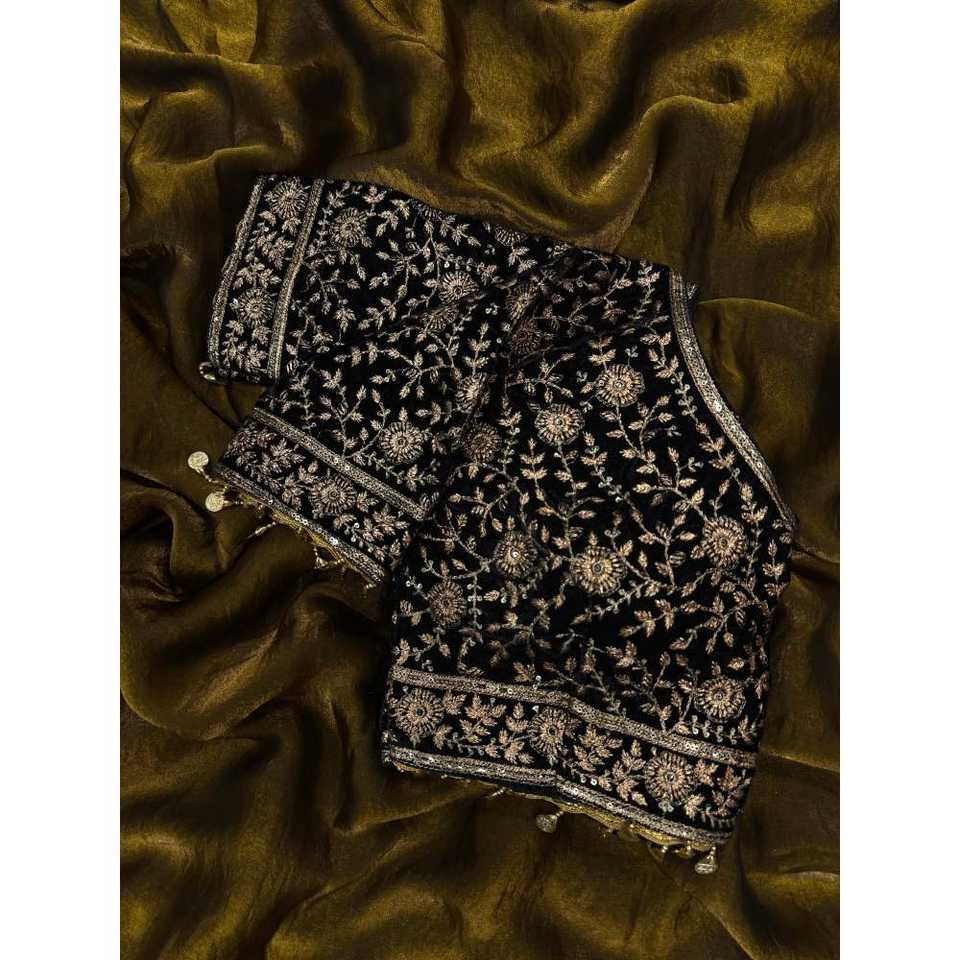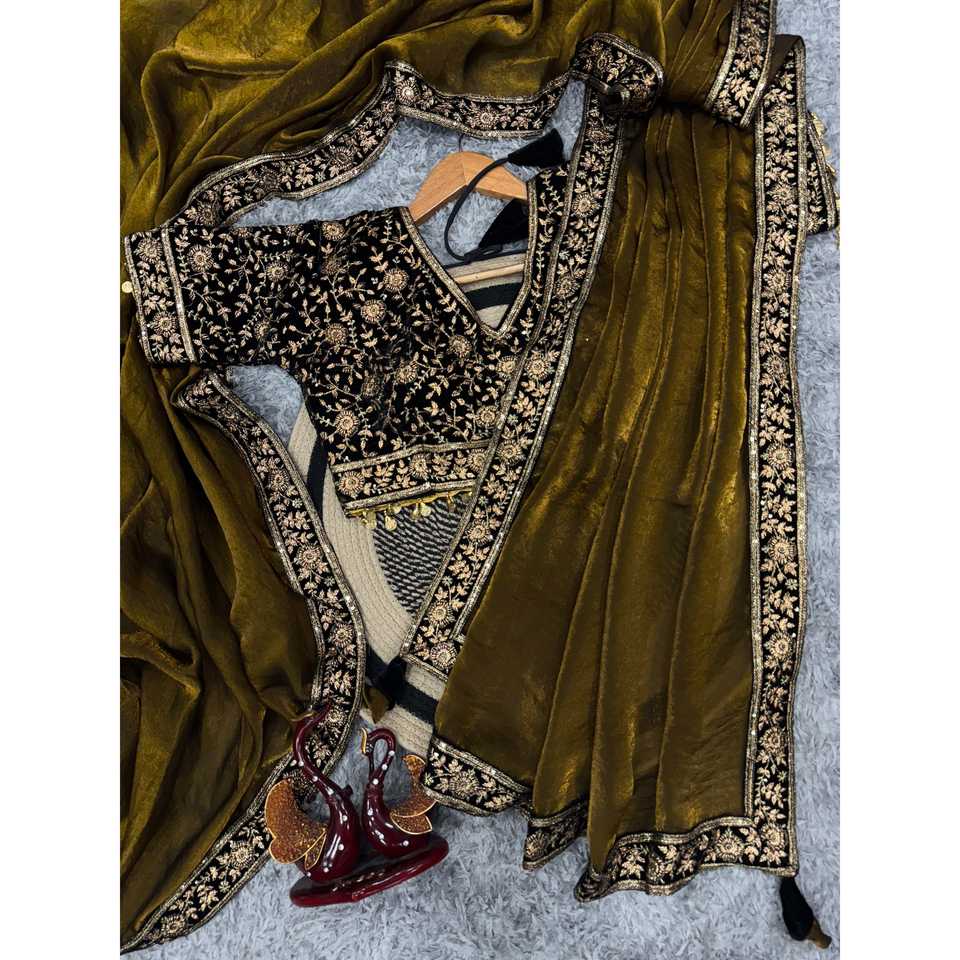 ชุดส่าหรีงานออกแบบสำหรับงานปาร์ตี้ ประดับเลื่อม งานปักดิ้นซารี และขอบลูกไม้ สำหรับชุดราตรี