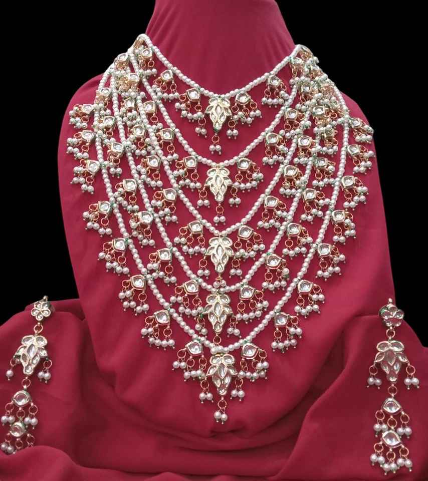 ชุดเครื่องประดับอัญมณีอัญมณีอัญมณีแบบดั้งเดิมเจ็ดชั้นสร้อยคอยาวมากดีไซน์สวยต่างหู