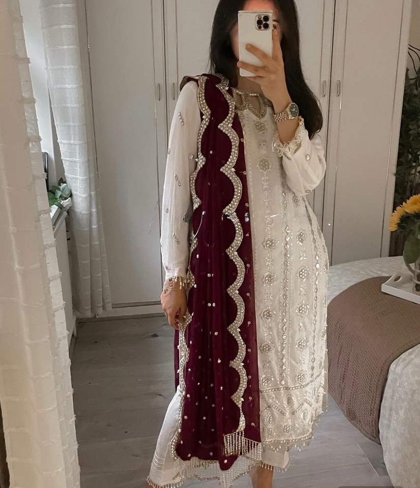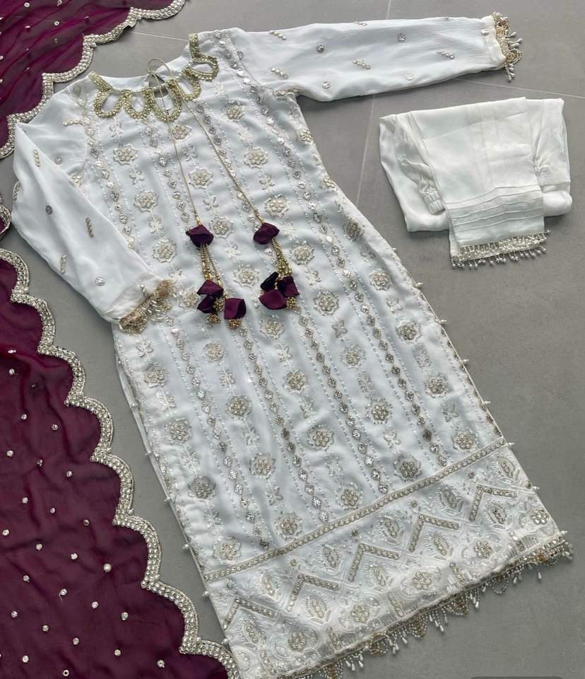 Product Name:Faux Georgette Sequence Embroidery Kurti And Bottom With Dupatta