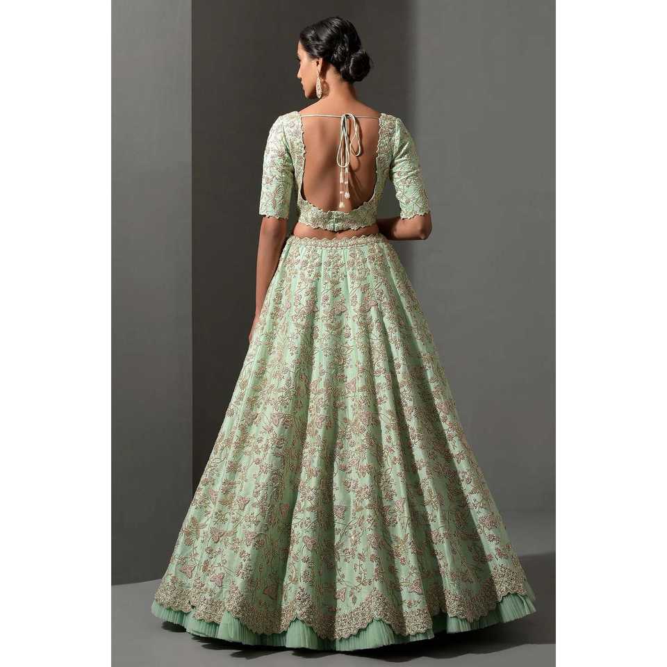 Lehenga choli ชุดปาร์ตี้ออกแบบด้วยด้ายและ dori ชุดใส่ทำงานมีประสิทธิภาพ