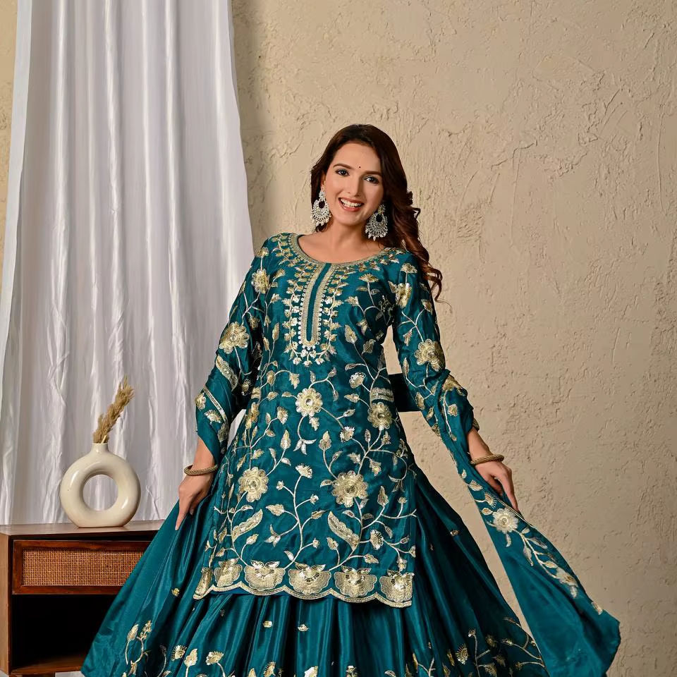 Product Name:Chinon Silk Top Lehenga And Dupatta Set