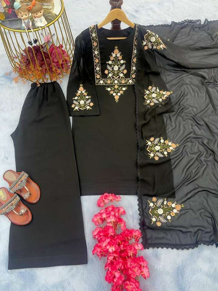 ชุดออกงานดีไซเนอร์ - เสื้อท่อนบนพร้อมกางเกงพลัสโซและผ้าคลุมไหล่ ผ้าท่อนบนเนื้อจอร์เจียต์เทียมอย่างดี ปักลายอย่างสวยงาม พร้อมแขนกระดิ่งสุดหรู