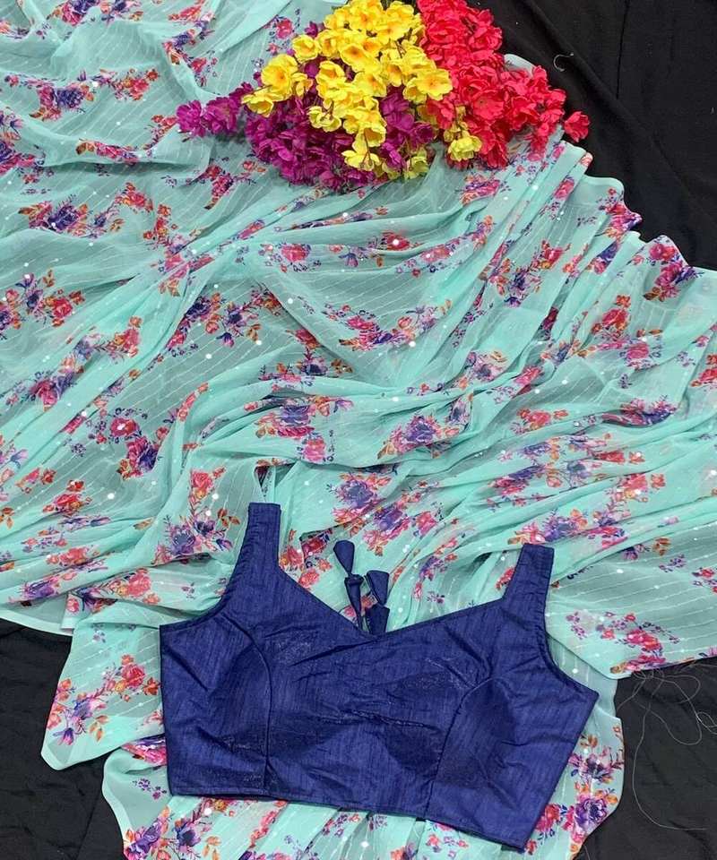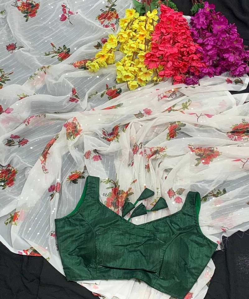 ผ้าจอร์เจียส่าหรีสีขาวสำหรับผู้หญิงเสื้อผ้าอินเดียและปากีสถานสำหรับผู้ใหญ่สำหรับงานเทศกาลสินค้าออกใหม่