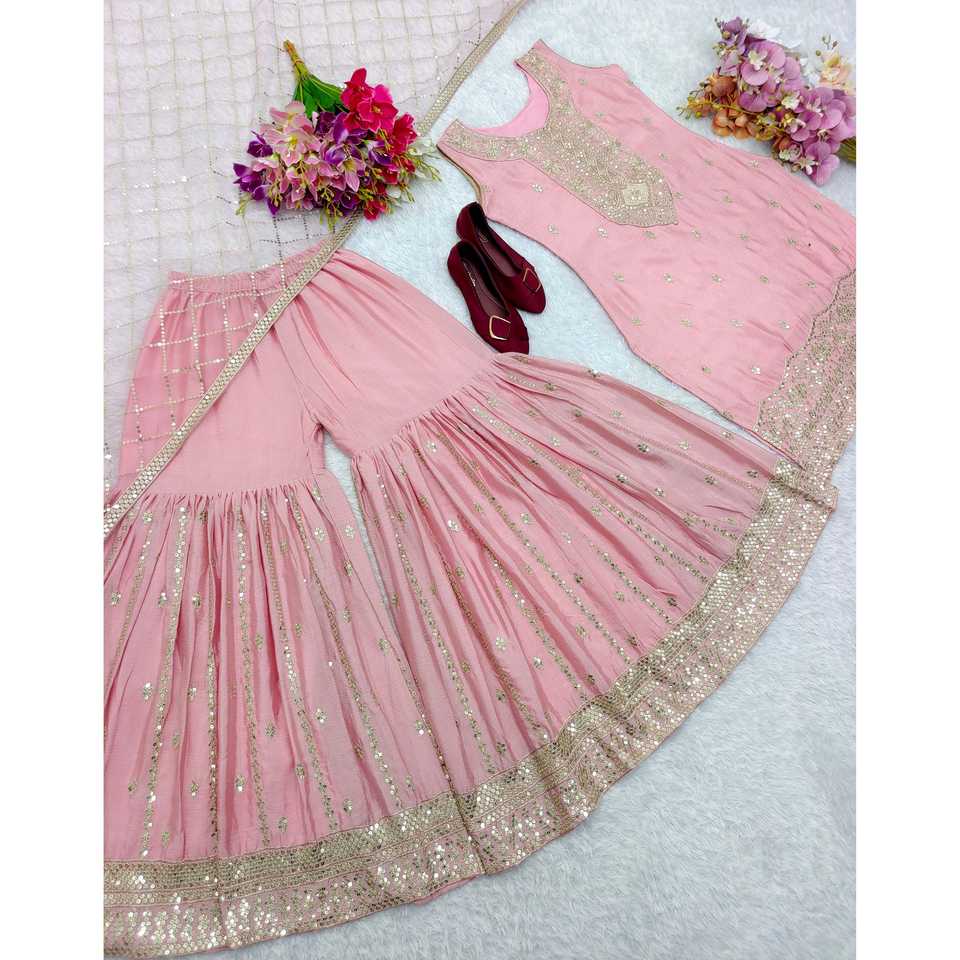 ชุดปาร์ตี้นักออกแบบสวมด้านบน-sarara และ dupatta ที่สวยงามสำหรับชุดพรหม