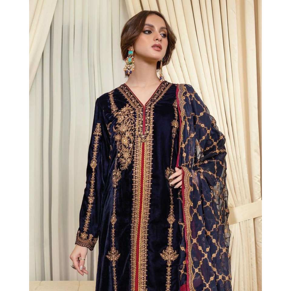 ชุดนักออกแบบปาร์ตี้สวมด้านบนและด้านล่างพร้อมแขนยาวสามส่วน dupatta