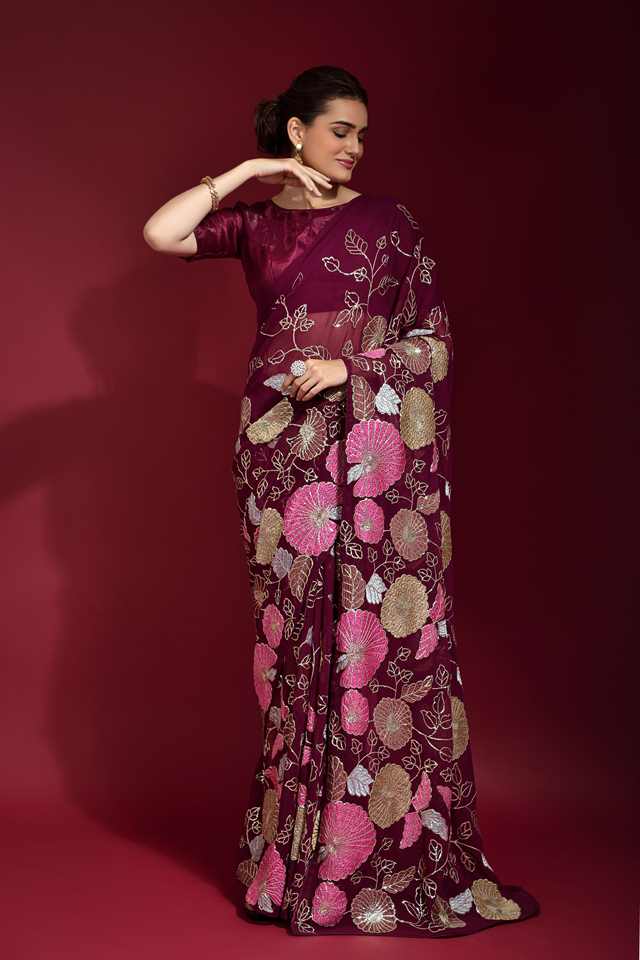 Party Wear Sequence Embroidery Saree