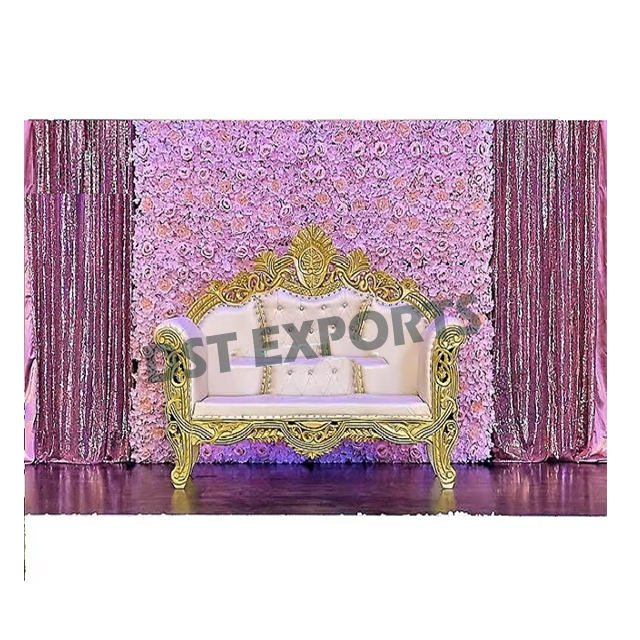 โซฟาคู่สำหรับงานแต่งงานแบบหรูหราหรูหรามีลายนกยูงแกะสลักด้วยมือสำหรับงานแต่งงาน