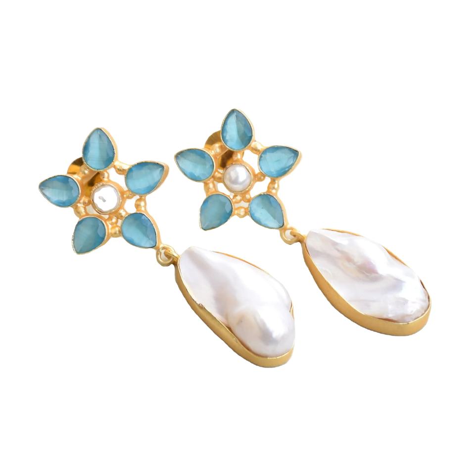 ต่างหูทองเหลืองประดับพลอยขายส่งจำนวนมาก ต่างหูมุกและหินธรรมชาติ ขัดเงาสูง ชุบทอง ปลอดภัยต่อผิวแพ้ง่าย สวมใส่สบาย