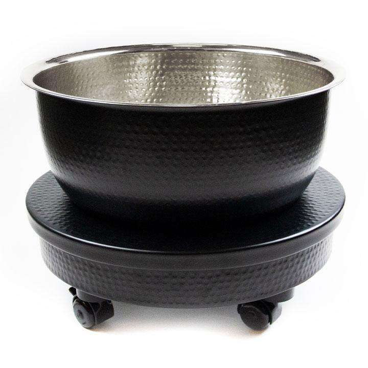 รถเข็นทำเล็บดีไซน์เนอร์พร้อมอ่างแช่เท้า อ่างทำเล็บโลหะสองสี ด้านในเป็นสีดำเงา ด้านนอกเป็นสีดำแบบตอกลาย อ่างแช่เท้าสำหรับทำเล็บ