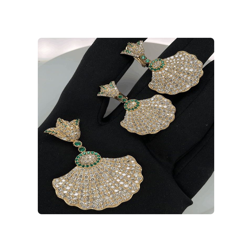 ชุดต่างหูจี้เพชรธรรมชาติสีเหลืองทองชุดเครื่องประดับแฟชั่นสำหรับเป็นของขวัญ14kt จากนักออกแบบ
