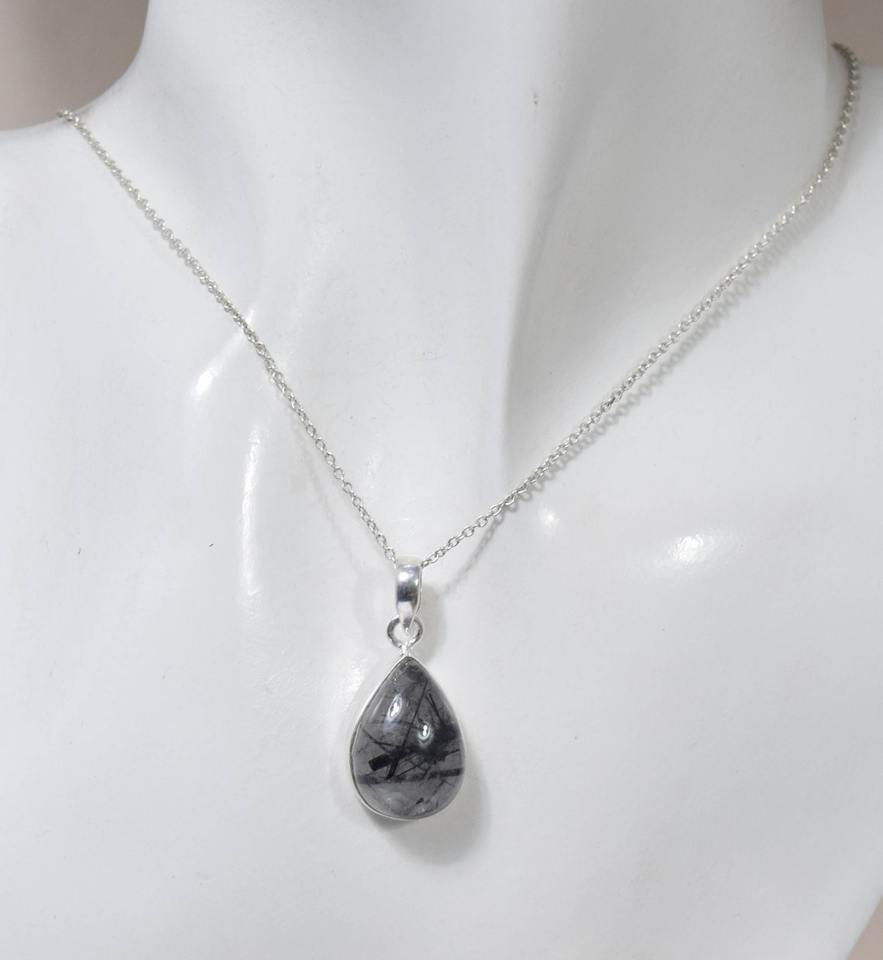 จี้ดีไซน์เนอร์รูปลูกแพร์ของขวัญสำหรับเครื่องประดับจี้แฟชั่นอัญมณีสีดำทำด้วยมือของเธอ925จี้อัญมณีเงินสเตอร์ลิง