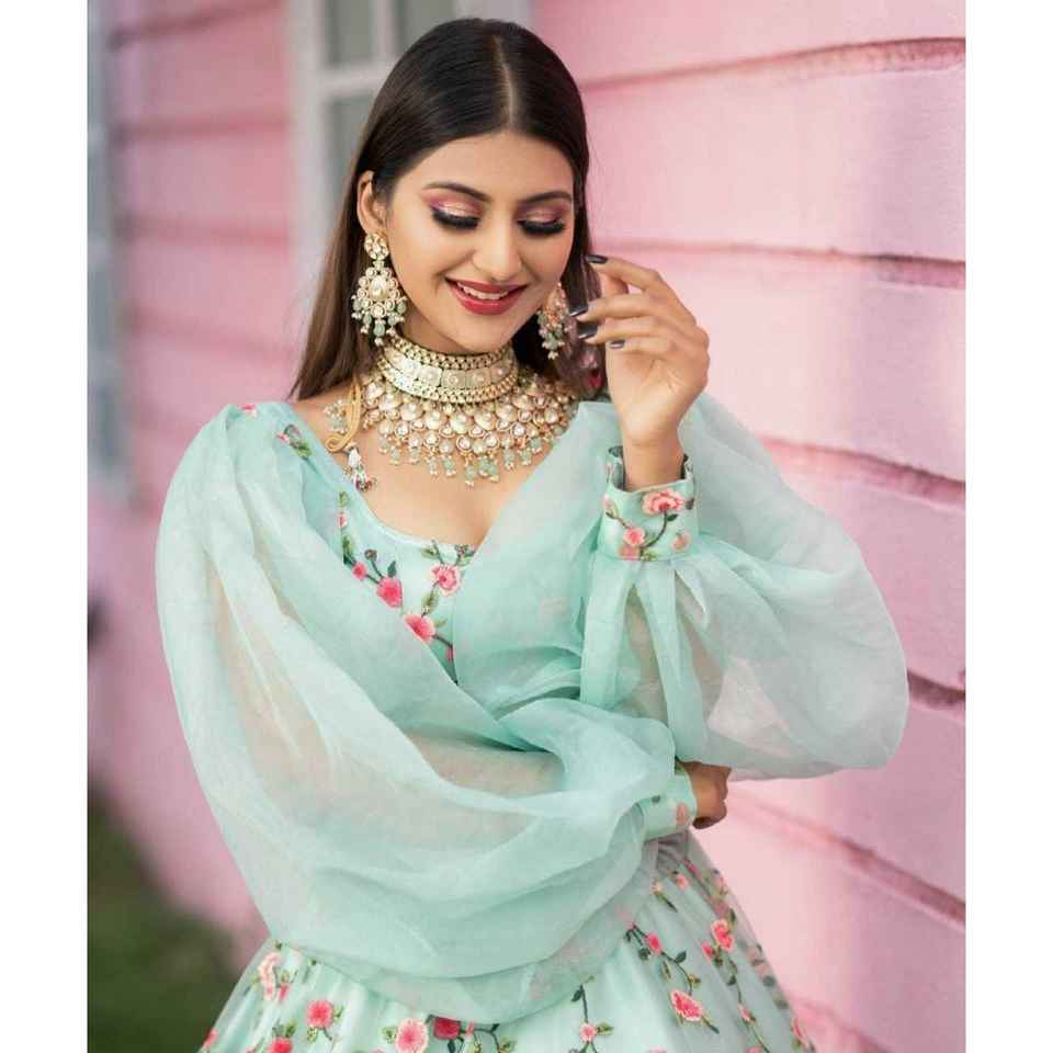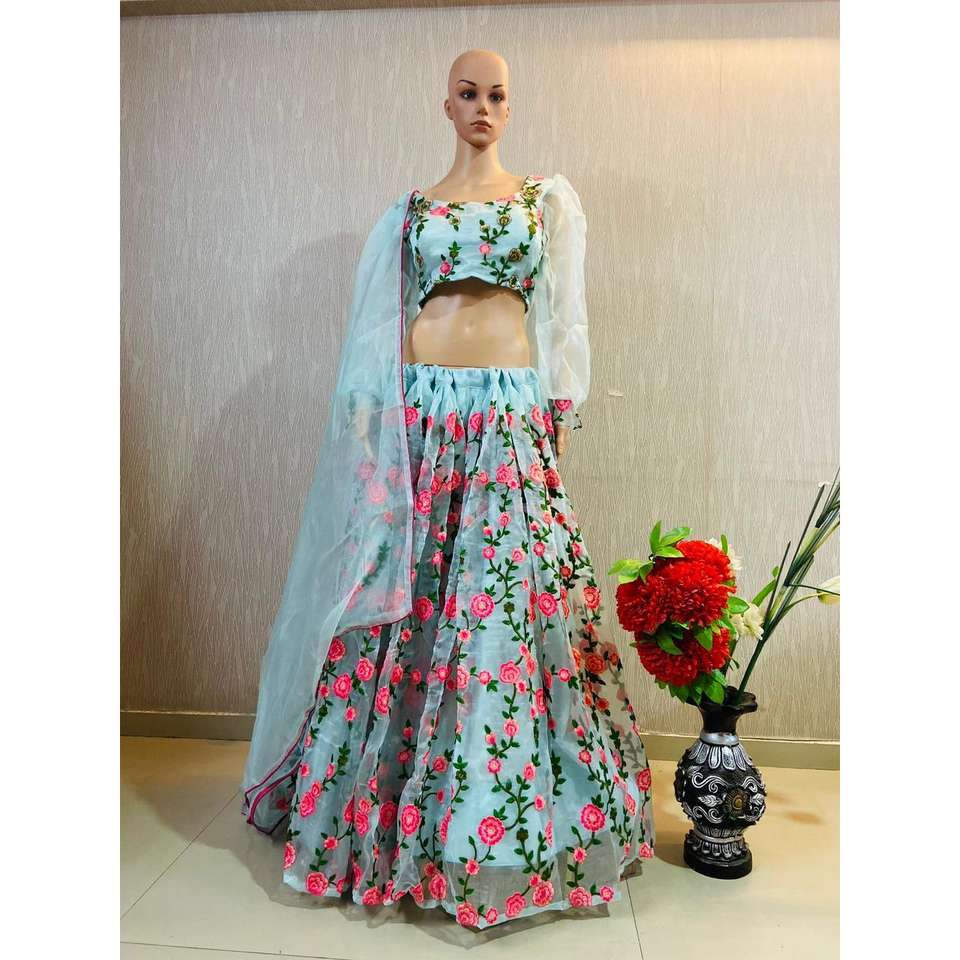Lehenga choli ชุดงานเย็บปักถักร้อยที่สวยงามสำหรับงานปาร์ตี้