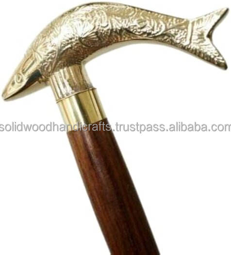 Designer ส่วนบุคคลไม้พับไม้เท้าไม้เท้า Handmade ตกแต่งทองเหลืองจับเดินเรือไม้สําหรับคนชรา