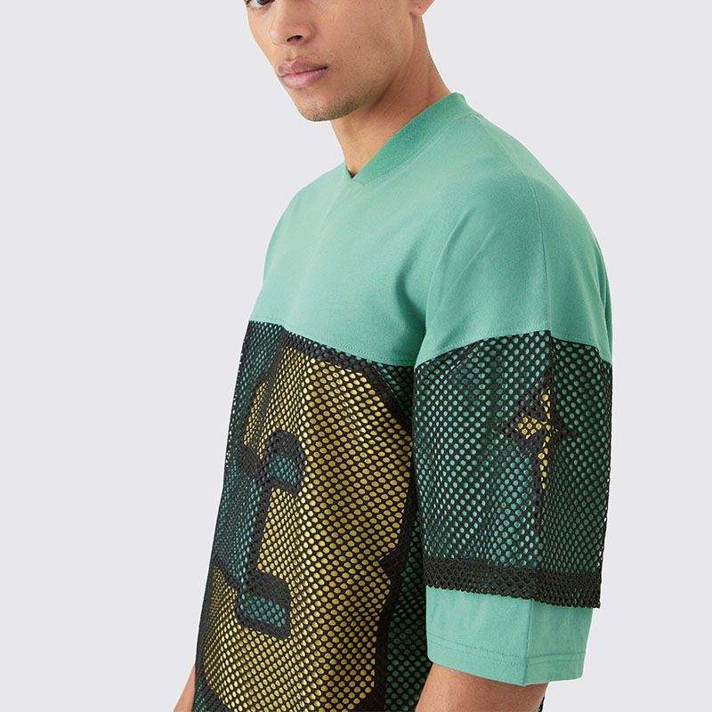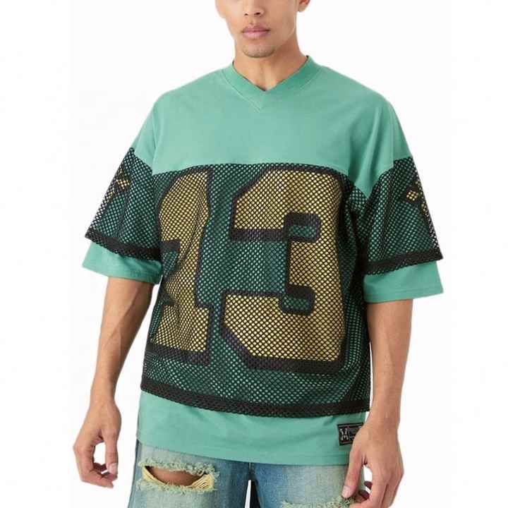 เสื้อยืดคอวีพิมพ์ลายดิจิตอลขนาดใหญ่สำหรับผู้ชายดีไซน์เนอร์ทรงพลัสไซส์ทำจากโพลีเอสเตอร์/ ผ้าฝ้าย