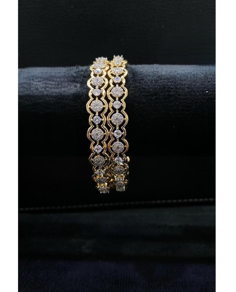 กำไลทองชุบคุณภาพพรีเมียมประดับเพชร CZ สองชุด สำหรับงานแต่งงานและงานปาร์ตี้ของผู้หญิง