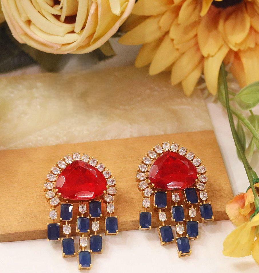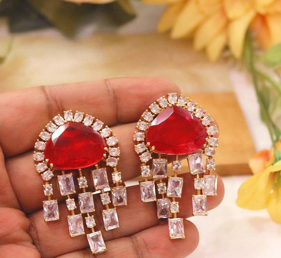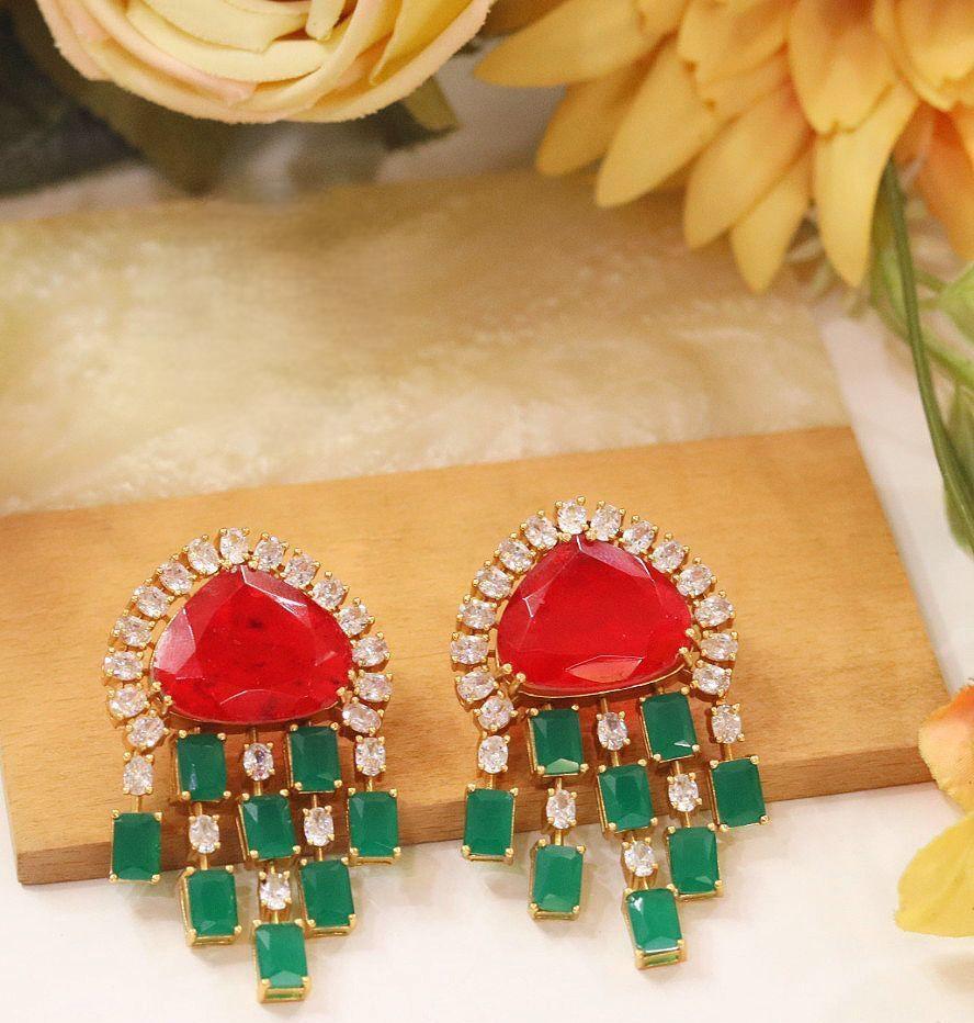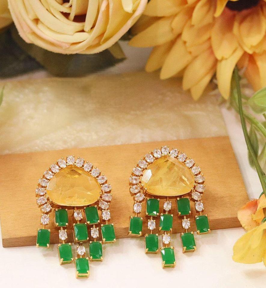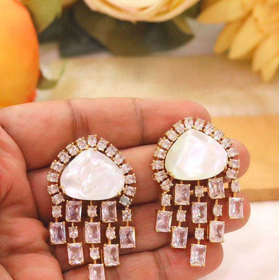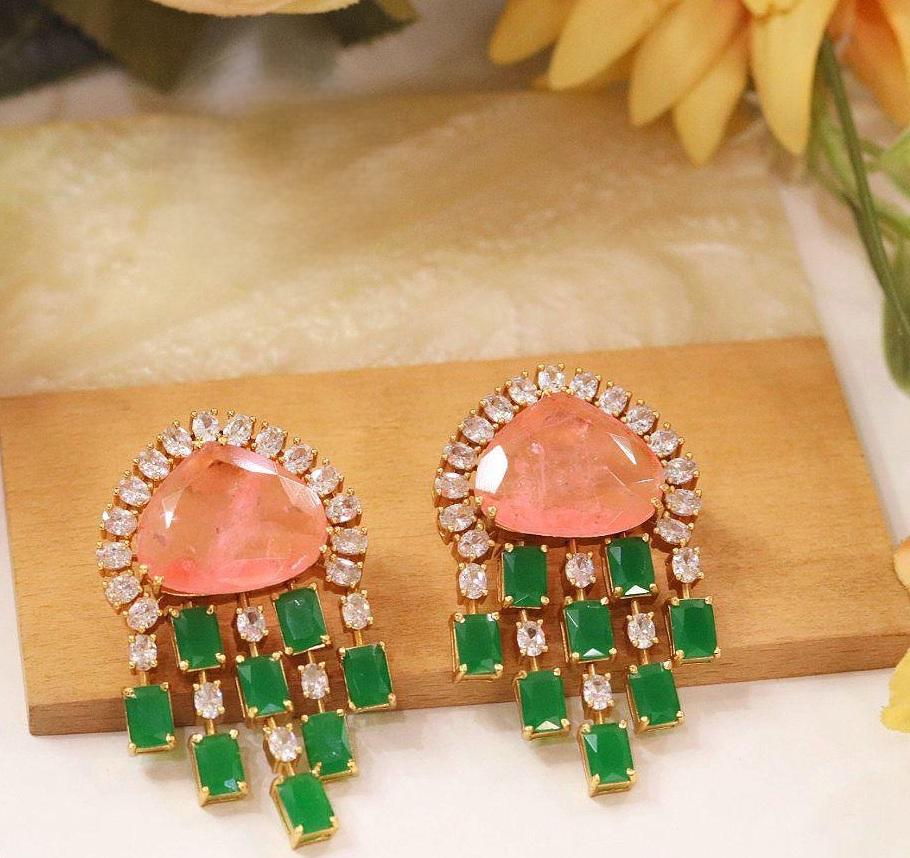 ต่างหูดีไซน์เนอร์คุณภาพพรีเมียม ชุบทอง ประดับด้วยเพชร CZ ดีไซน์หรูหรา เหมาะสำหรับงานแต่งงานและงานปาร์ตี้ สำหรับผู้หญิงและเด็กผู้หญิง