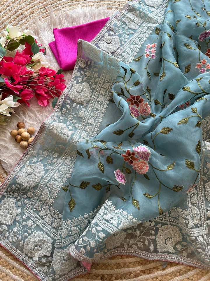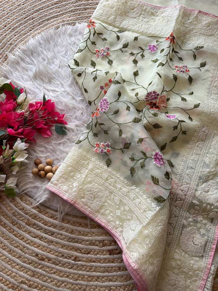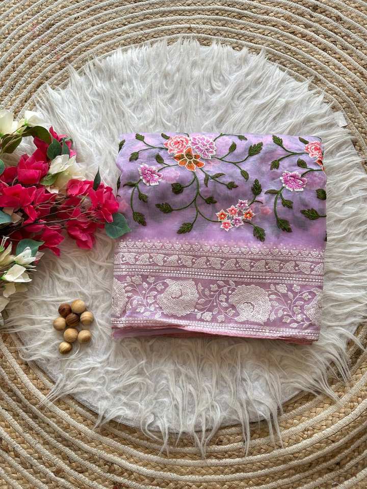ผ้าส่าหรีผ้าไหมแท้ดีไซน์เนอร์พร้อมงานปักสวยงามและขอบงานแฟนซีสำหรับงานแต่งงานและงานปาร์ตี้