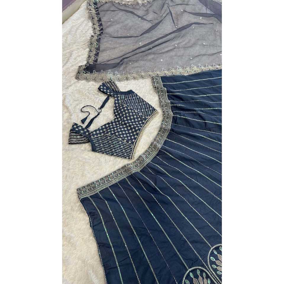 ชุดเลเฮนกาโชลีลายรุ้งสำหรับงานปาร์ตี้ เสื้อผ้าอินเดียและปากีสถาน พร้อมงานปักด้ายและดอริ