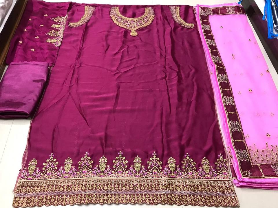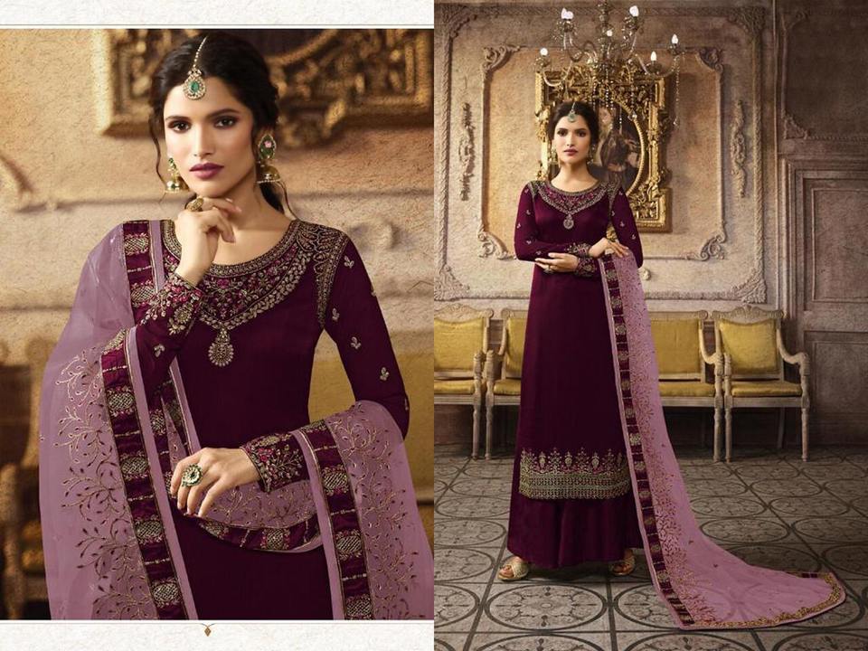 Rangoli ซาตินสีแดงกับงานปักของ Kurti กับ Plazzo,ผีเสื้อหนักสุทธิกับ Duppata หนักเต็มรูปแบบ
