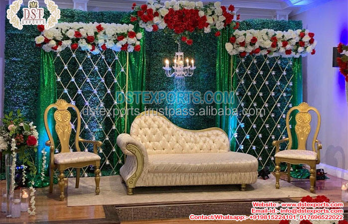 โซฟาสีทองแดงสำหรับงานแต่งงานเวทีไม้สักสำหรับเจ้าสาว