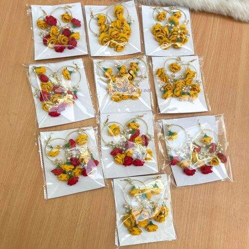 Product Name:Rose flower chand bali jhumka , Haldi jewellry
