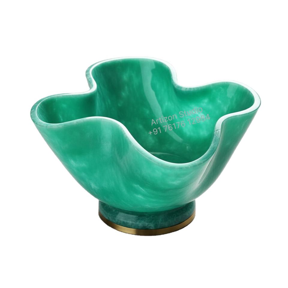 ชามผลไม้เกรดอาหารทำจากเรซิ่นดีไซน์เนอร์ทนทานเลือกสีได้เป็นมิตรกับสิ่งแวดล้อมสำหรับวางกลางโต๊ะงานปาร์ตี้จัดแสดงในบ้านที่ทันสมัย