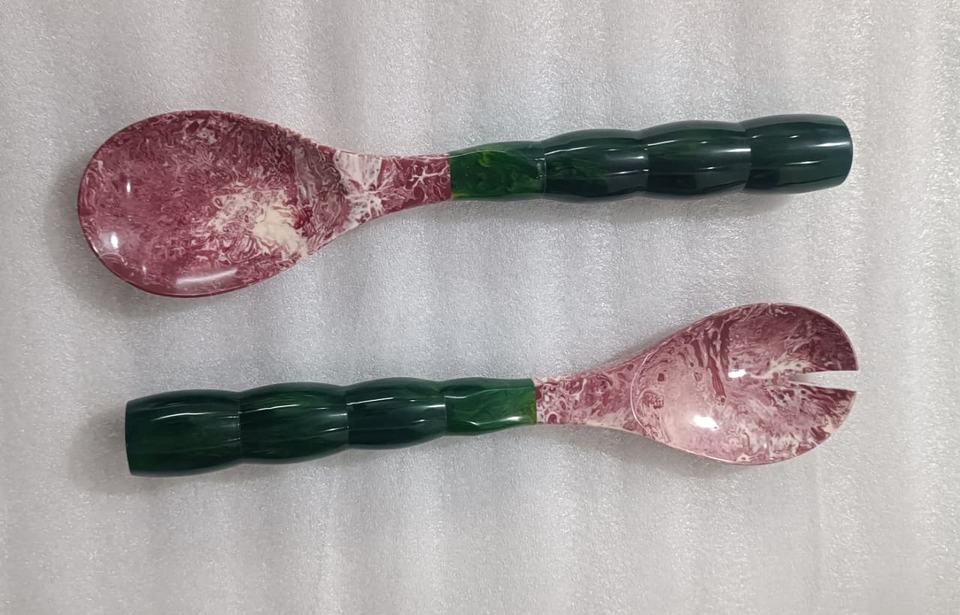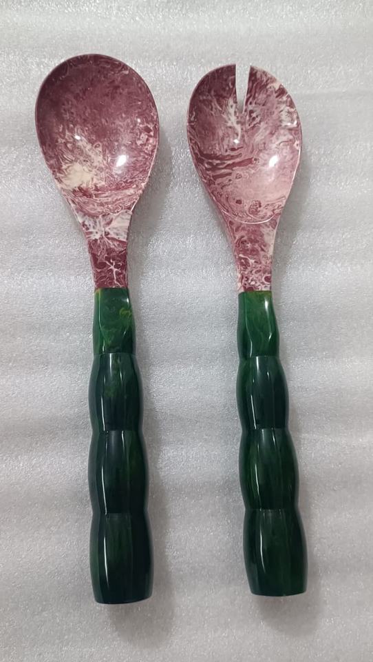ชุดช้อนส้อมเรซิ่นดีไซน์เนอร์สำหรับเสิร์ฟสลัด สวยงาม ทันสมัย ใช้ในงานปาร์ตี้ได้ ปลอดภัยสำหรับเครื่องล้างจาน ทำด้วยมือ