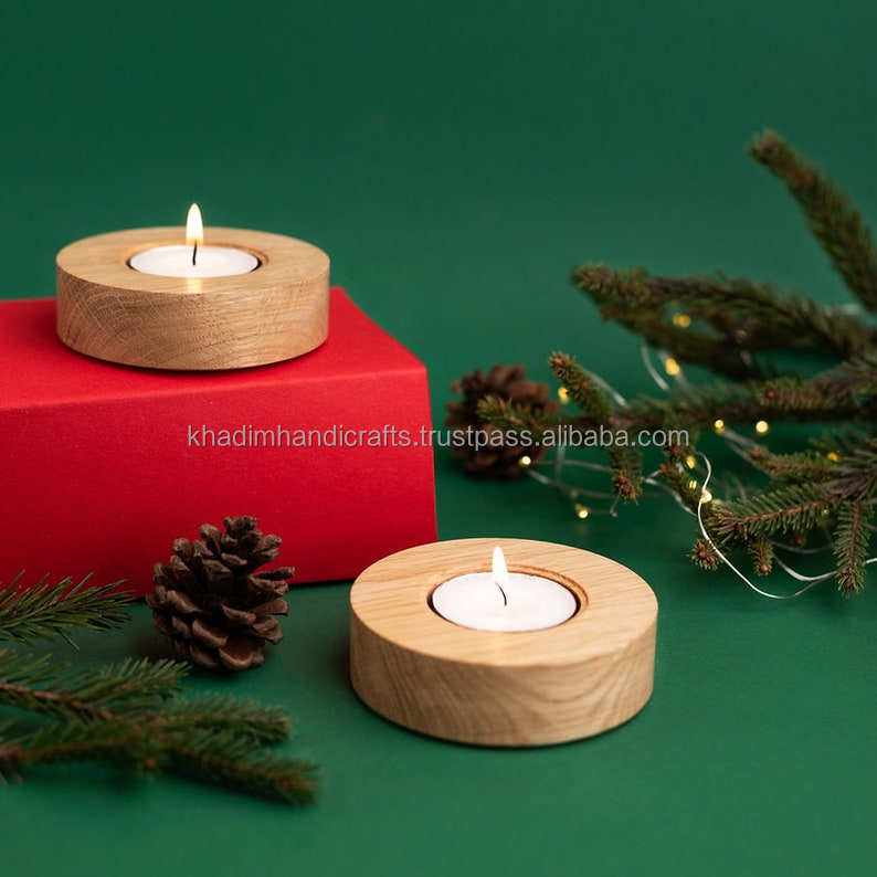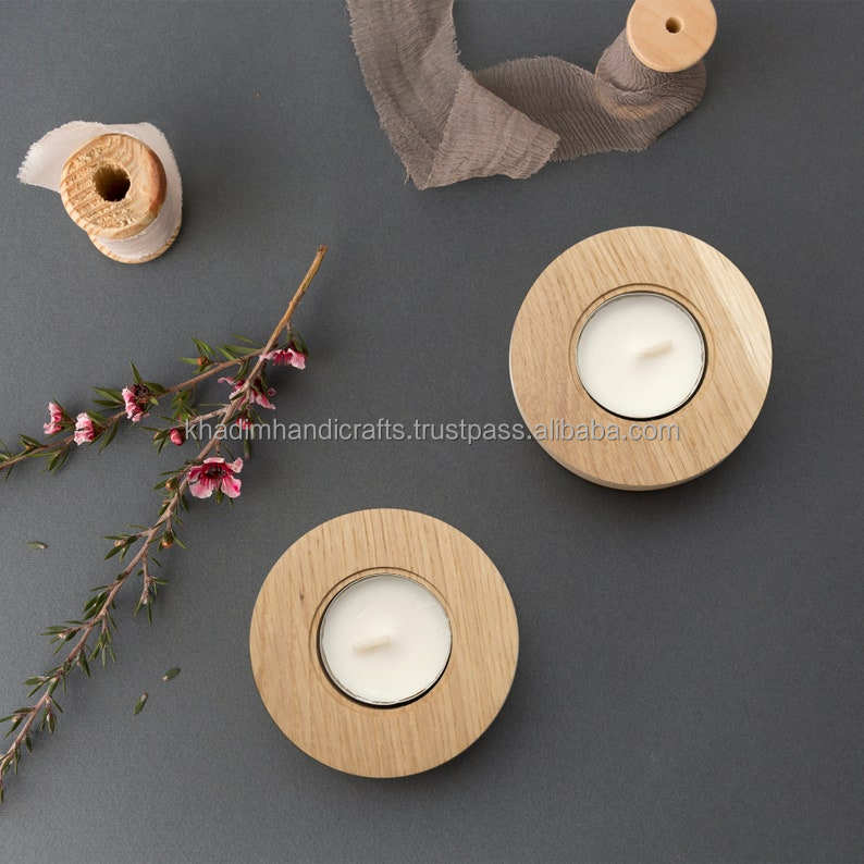 Designer Resin & Wood Combination T-Light Holder, Handmade Rustic Modern Decorative Candle Stand for Home Styling