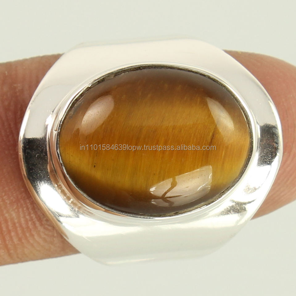ออกแบบแหวนรูปไข่ขนาดธรรมชาติเสือตาอัญมณี925ของแข็งเงินสเตอร์ลิง