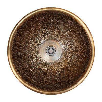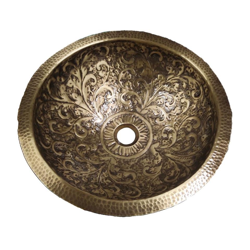 อ่างล้างหน้าทรงกลมดีไซน์โบราณ สีทองเหลือง ผิวสัมผัสแบบตอกลาย หรูหรา สำหรับห้องน้ำ อ่างวางบนเคาน์เตอร์โลหะสีทองพรีเมียม