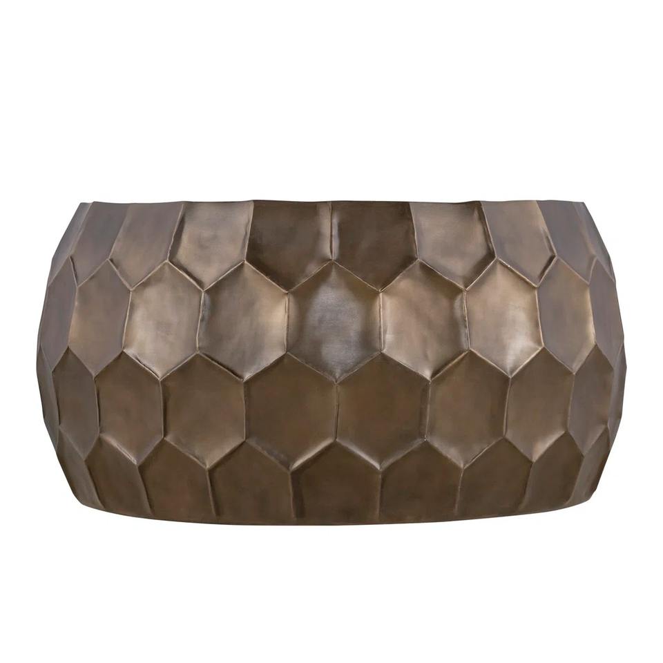โต๊ะกาแฟกระจกสีดำดีไซน์รักษ์โลก ฐานโลหะสีทองลายรังผึ้ง หรูหรา ทันสมัย สไตล์มินิมอล สำหรับห้องนั่งเล่น