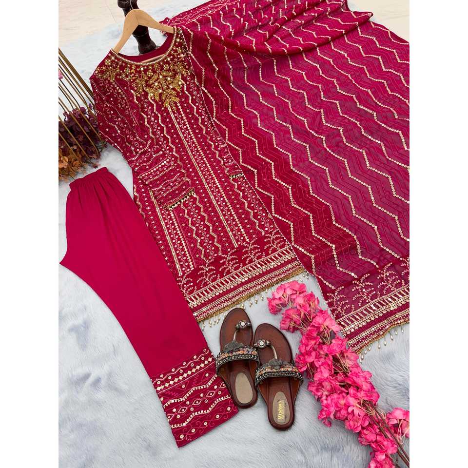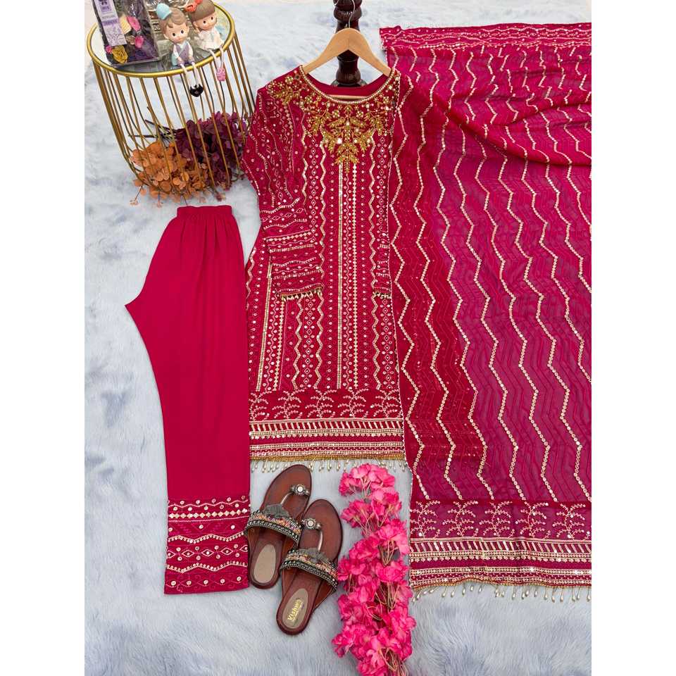 ชุดเสื้อผ้าสตรีแบบดีไซเนอร์ ซาลวาร์ คามีซ สำหรับงานปาร์ตี้ ประกอบด้วยเสื้อ กางเกง และผ้าคลุมไหล่ ตกแต่งด้วยงานปักเลื่อม ทำจากผ้าโพลีเอสเตอร์