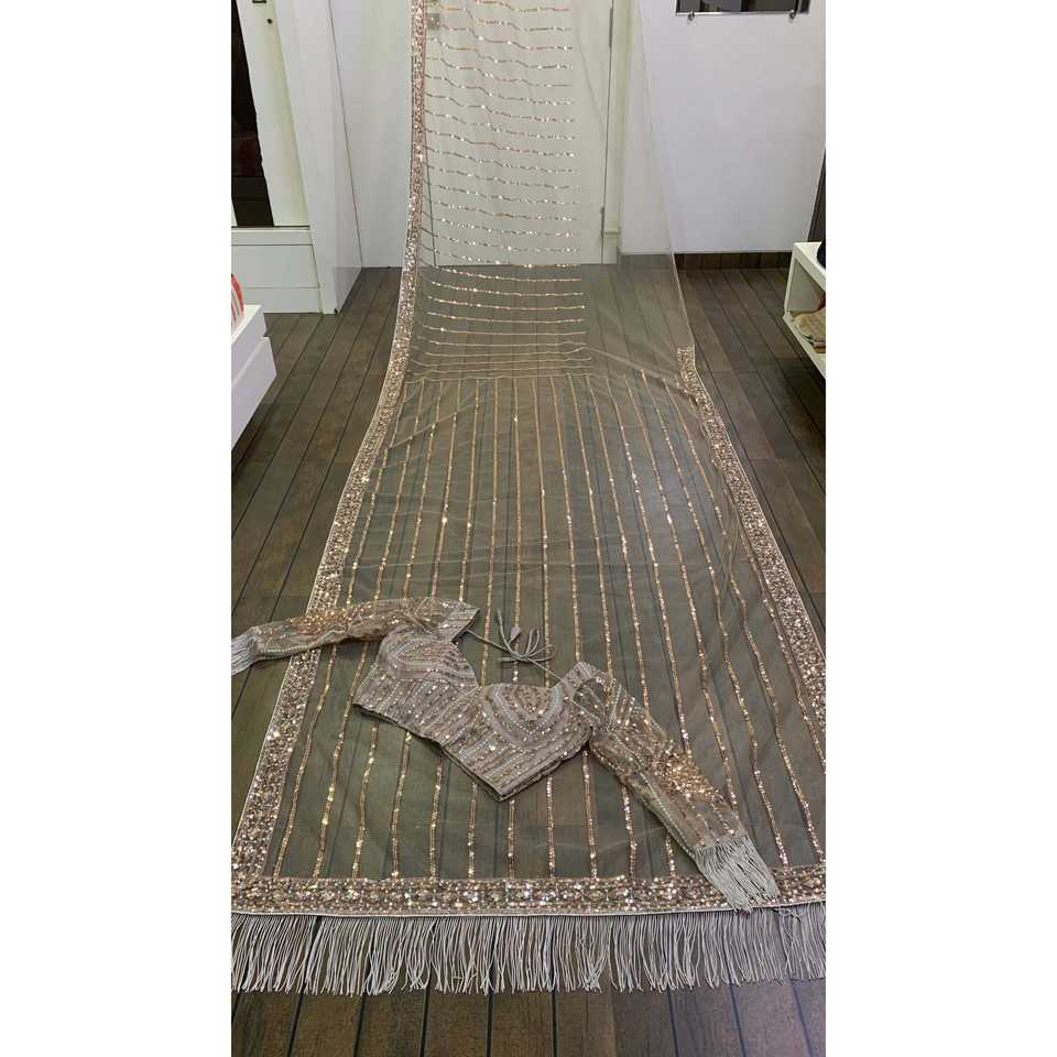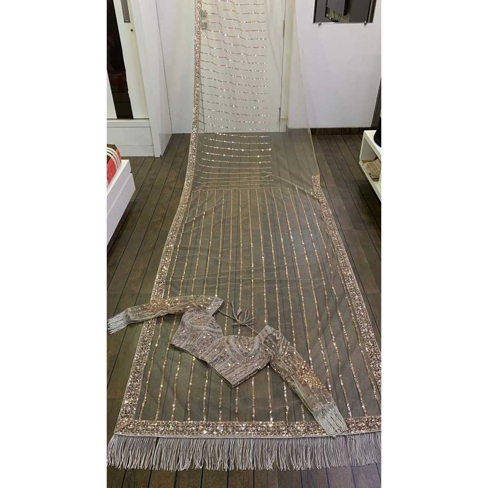 ชุดส่าหรีดีไซเนอร์สำหรับงานปาร์ตี้และชุดคลับ ประดับด้วยงานปักดิ้นดอริและซารี