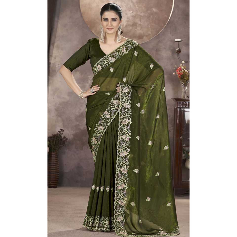 ส่าหรีออกแบบด้วยด้ายเย็บปักถักร้อยและชุดประสิทธิภาพการทำงานลำดับ