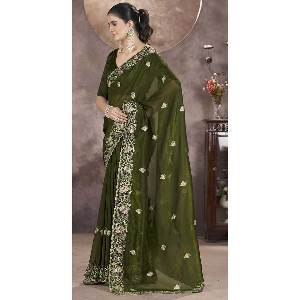 ส่าหรีออกแบบด้วยด้ายเย็บปักถักร้อยและชุดประสิทธิภาพการทำงานลำดับ