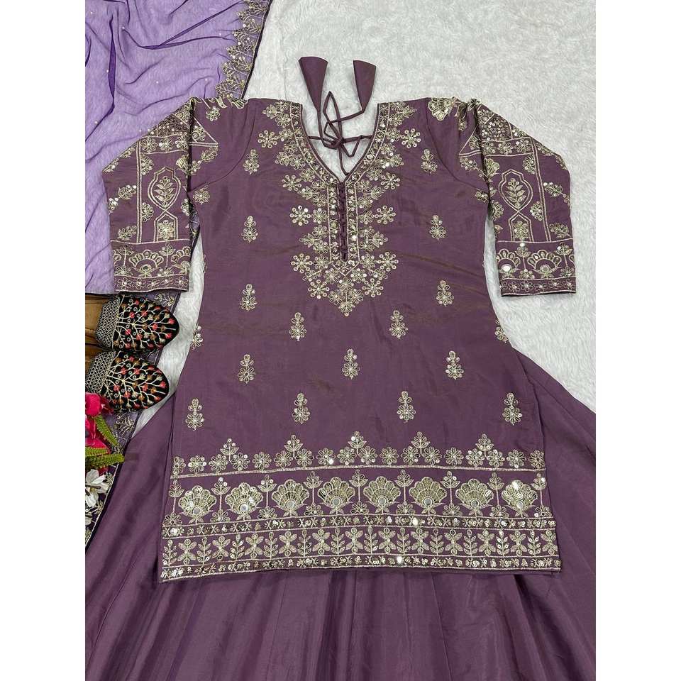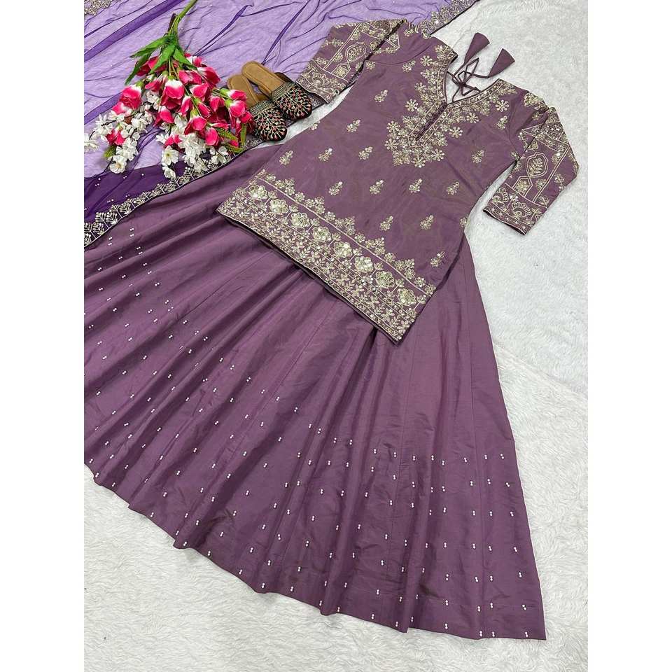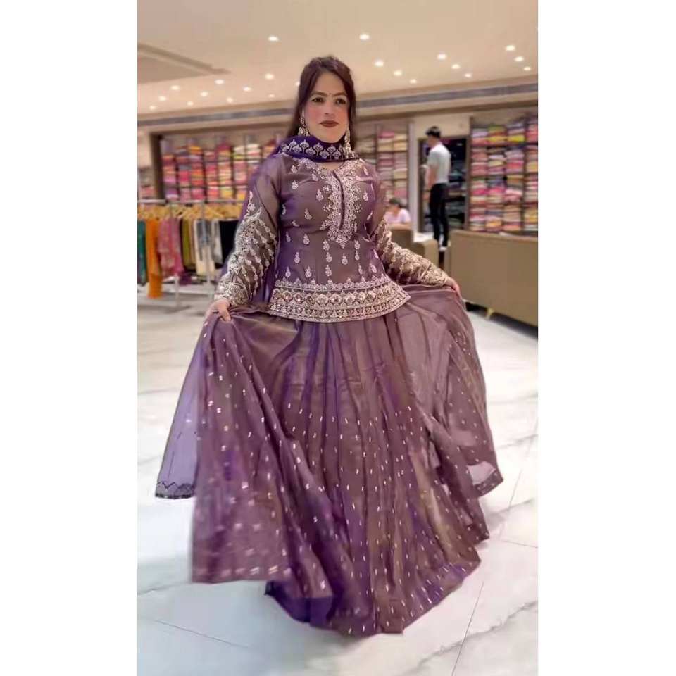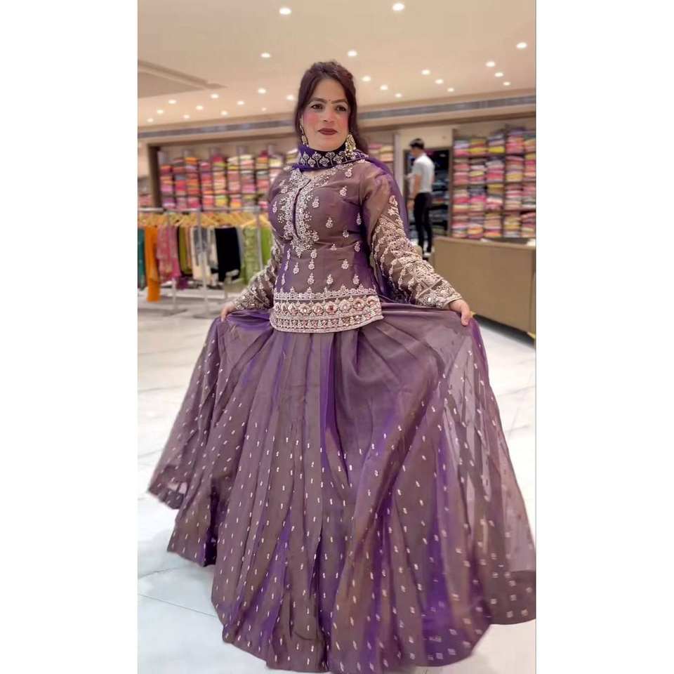 ชุดเลเฮนกาผ้าซาตินดีไซน์เนอร์ แขนสามส่วน สำหรับงานปาร์ตี้ ตกแต่งด้วยงานปักและประดับเลื่อม
