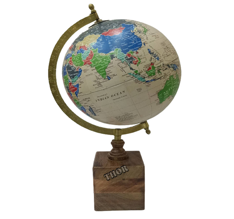 ชุดออกแบบลูกโลกสไตล์โลกเก่าโต๊ะสำนักงานลูกโลกยกบรรเทาชาร์ฐานไม้เนื้อแข็งโบราณทองเหลืองขัด